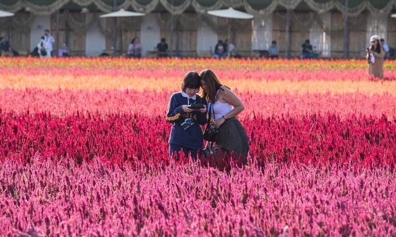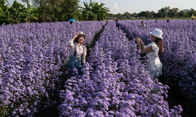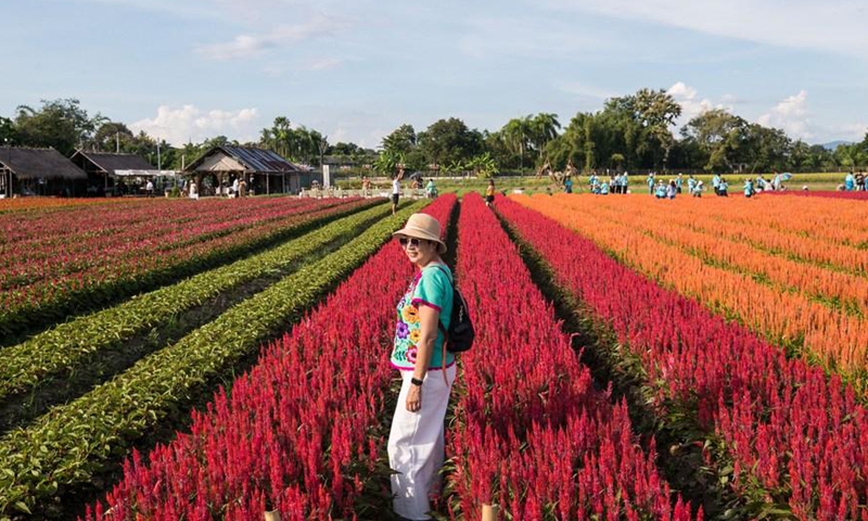Tourists take photos in a flower farm in Chiang Mai, Thailand, Nov. 2, 2020. (Xinhua/Zhang Keren)