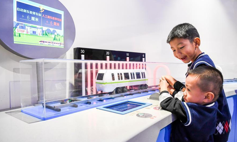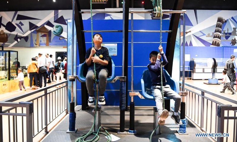Children enjoy themselves at Guangxi Science and Technology Museum in Nanning, capital of south China's Guangxi Zhuang Autonomous Region, Nov. 15, 2020. Various activities in Guangxi Science and Technology Museum help spark children's interests in technology. (Xinhua/Cao Yiming)