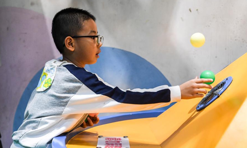 A boy enjoys himself at Guangxi Science and Technology Museum in Nanning, capital of south China's Guangxi Zhuang Autonomous Region, Nov. 15, 2020. Various activities in Guangxi Science and Technology Museum help spark children's interests in technology. (Xinhua/Cao Yiming)