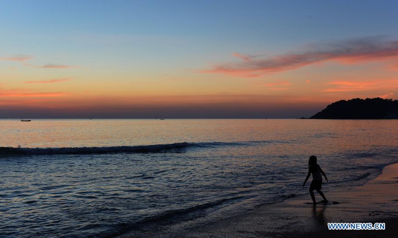 A child plays on the Chaolao beach in Chanthaburi province, Thailand, Nov. 14, 2020. (Xinhua/Rachen Sageamsak)