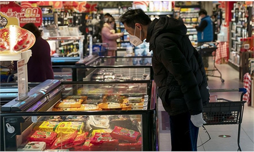 Customers select products at a duty-free shop in Haikou, south China's Hainan Province, Oct. 4, 2020. China's resort island province of Hainan raked in 1.04 billion yuan (about 155 million U.S. dollars) in duty-free sales during the National Day holiday, an increase of 148.7 percent year on year, according to customs authorities.Photo:Xinhua
