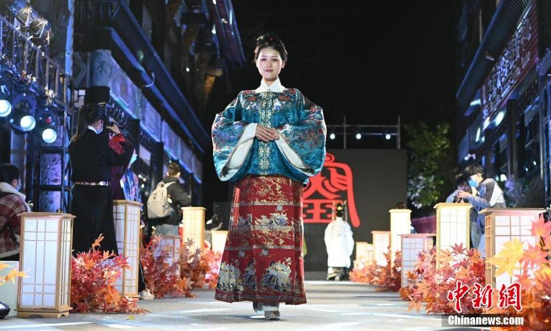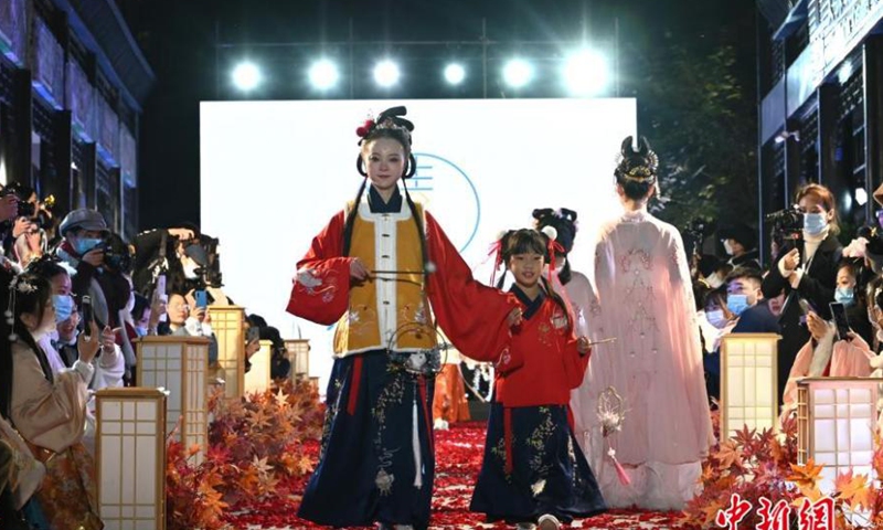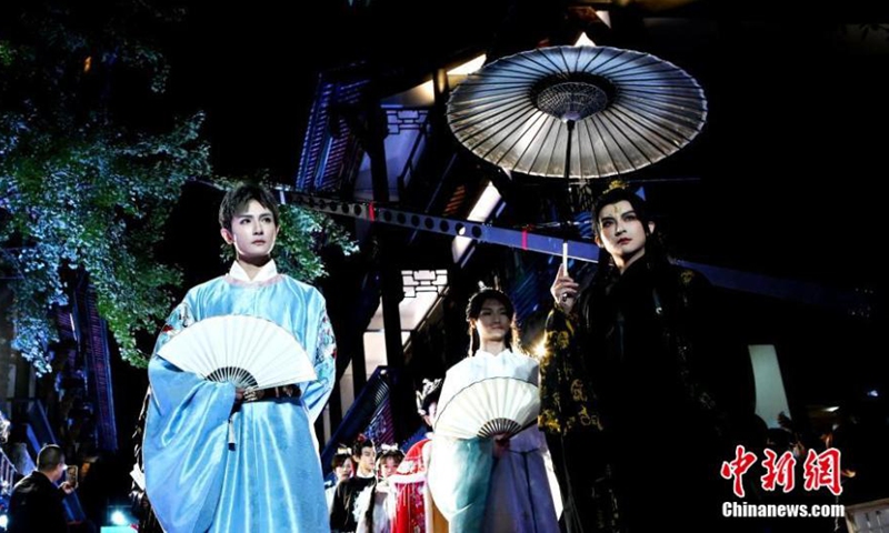 Hanfu lovers dress in hanfu, the traditional clothing of the Han ethnic group at 2020 Hanfu Festival in Chengdu, capital of Southwest China's Sichuan Province, Nov. 22, 2020. (Photo/China News Service)