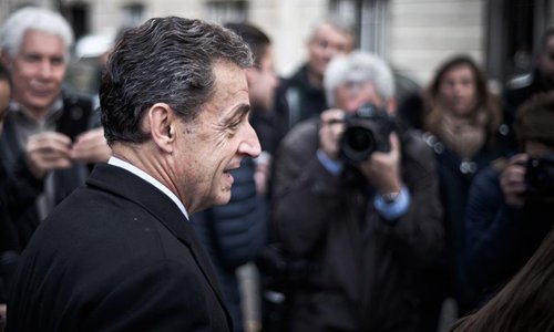 File photo taken on Nov. 20, 2016 shows former President Nicolas Sarkozy arriving to vote during the French right wing party "Les Republicains" Primaries as he is running for candidacy for the 2017 Presidential Election in Paris, France. Former French President Nicolas Sarkozy was in police custody for an investigation into his election campaign financing, local media reported on March 20, 2018, quoting a judiciary official source. Photo: Xinhua