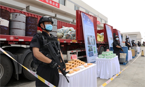 Police in Daishan county, East China's Zhejiang Province, count smuggled cigarettes on Wednesday. Local police, local customs and tobacco bureau solved a cigarette smuggling case, detained 29 suspects and seized 230,000 cartons of cigarettes worth 50 million yuan ($7.6 million). Photo: VCG