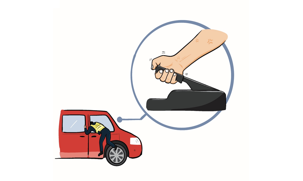 B: You might have read a news report about a policeman on duty in Zhejiang Province who hopped into the passenger seat and pulled the parking brake?