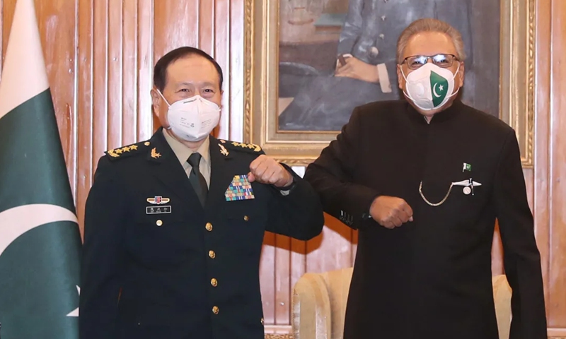 Wei met with Pakistani President Arif Alvi and Prime Minister Imran Khan in Islamabad and discussed a wide range of topics, including the building of the China-Pakistan Economic Corridor and defense cooperation, according to the Chinese Defense Ministry's WeChat account on Tuesday.