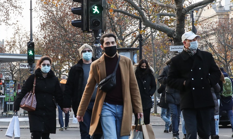 People are seen on a shopping street in Berlin, capital of Germany, on Nov. 27, 2020. (Photo: Xinhua)