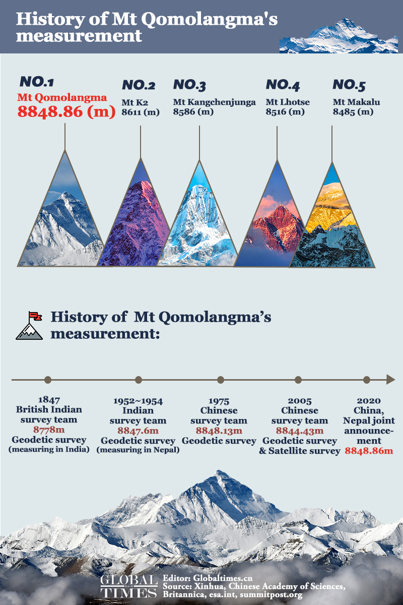 The Chinese measurement team made another successful journey to the peak of Mount Qomolangma on May 27, following a joint statement signed in 2019 by the two countries saying they would conduct scientific research and reach a consensus on the stature of the mountain during Chinese President Xi Jinping's visit to Nepal's capital city Kathmandu.