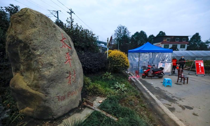 Photo taken on Dec. 9, 2020 shows the Taiping Village under traffic control in Pidu District of Chengdu, southwest China's Sichuan Province. (Xinhua/Shen Bohan)
