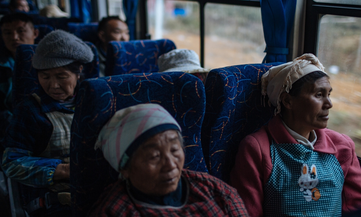 Commuting farmers take a bus to go back home after a day's work. Photo: Li Hao/GT
