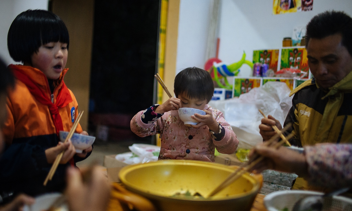 Lu Lin's family enjoys dinner at their new home provided by the government in Ziyun county. Photo: Li Hao/GT