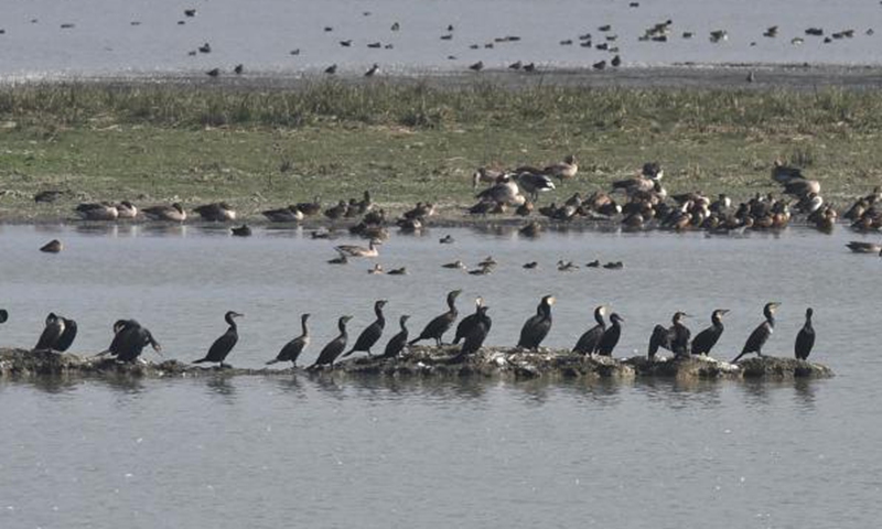 Migratory birds are seen at a wetland in Pobitora wildlife sanctuary on the outskirts of Guwahati, India's Assam State on Dec. 10, 2020.Photo:Xinhua