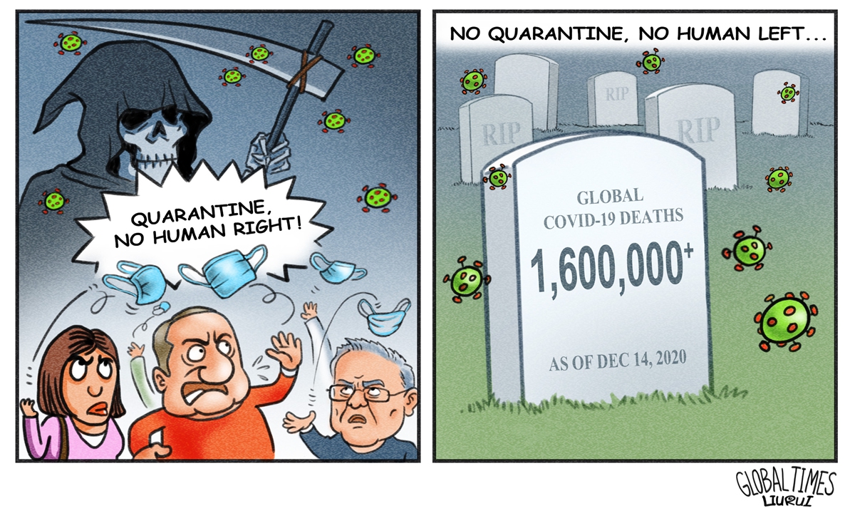 Editor's Note: No one in the world would have imagined they had to live through difficult times amid the coronavirus pandemic that has completely changed the way we live. When many Chinese people thought they had successfully contained the outbreak in mid-March, they didn't expect to see more and more countries later engulfed in this "war against the virus". German Chancellor Angela Merkel recently made a rare emotional appeal, calling for tougher measures for Christmas social distancing while the single-day death in the US caused by COVID-19 has exceeded that of the 9/11, a much deeper reflection is necessary on this virus battle. Is it about a competition between different governance system? How to strike a balance between individual freedom and the collective public health? This is the fourth investigative story the Global Times has conducted as the year draws to a close. The previous articles probed into the possibility that Wuhan's outbreak was caused