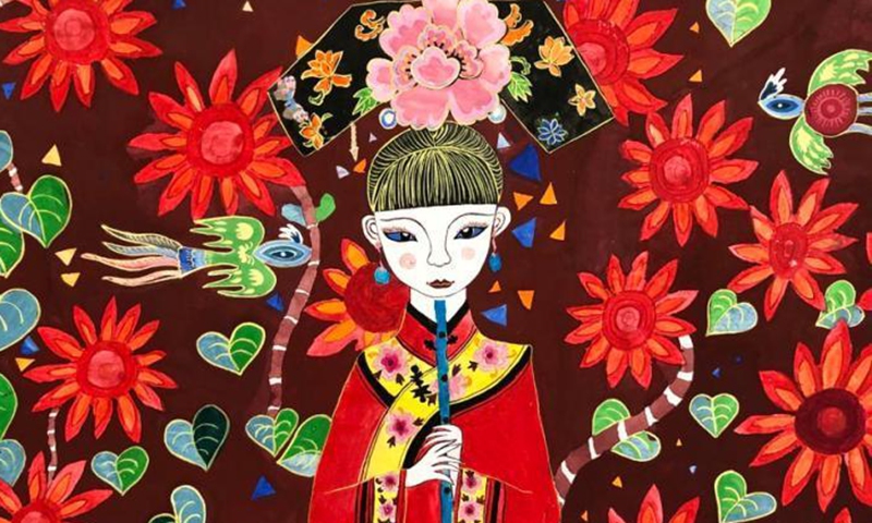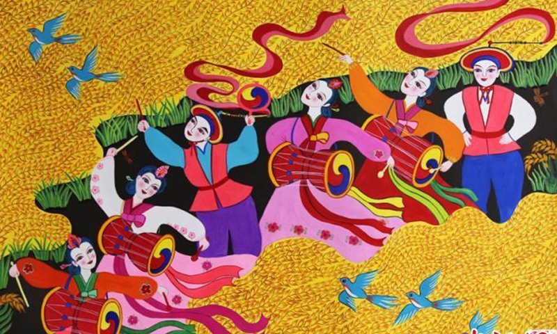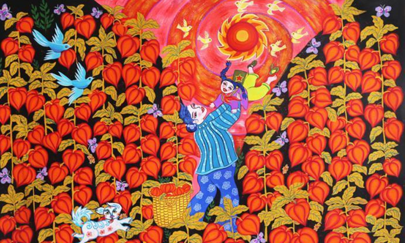 This photo shows a painting drawn by a female painter in Huadian, the Chinese Modern Folk Art Village in Jilin province. (Photo provided to China News Service) Nearly 15,000 painters engage in depicting traditional agriculture in Huadian, with female artists accounting for 70 percent of the total. Many works are sold to the U.S. and Germany, with some selected for display at the United Nations.