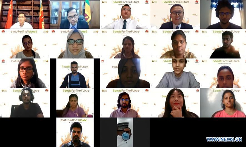 The image shows the online launching ceremony of Huawei's "Seeds for the Future" program held in Colombo, Sri Lanka, Dec. 14, 2020. Huawei has launched the fifth edition of its "Seeds for the Future" corporate social responsibility program in Sri Lanka, which will see local students receive training in China, a statement said here Tuesday. (Huawei Sri Lanka/Handout via Xinhua)