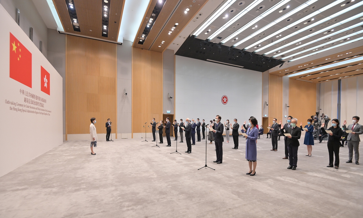 All undersecretaries and political assistants of the Hong Kong Special Administrative Region (HKSAR) government took the oath of allegiance to the HKSAR Basic Law and the HKSAR on Wednesday morning, a move that will be completed by all Hong Kong civil servants by the end of next month, Hong Kong media reported.