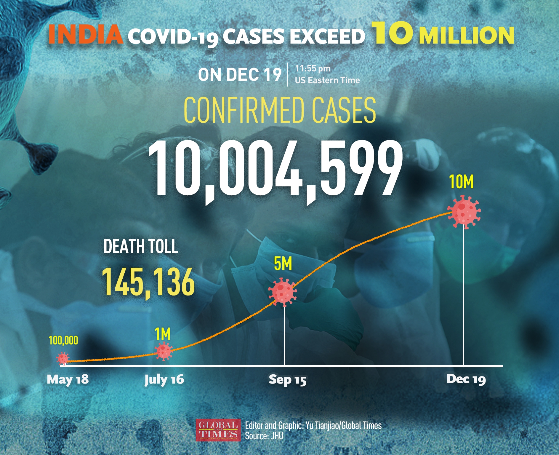 India COVID-19 cases exceed 10 million infographic: Yu Tianjiao/GT