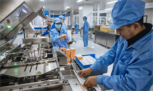 Quality inspectors on Sinovac vaccine production lines use digital technology platforms to monitor the quality and efficiency of vaccine packaging on Sunday. Photos: Li Hao/GT