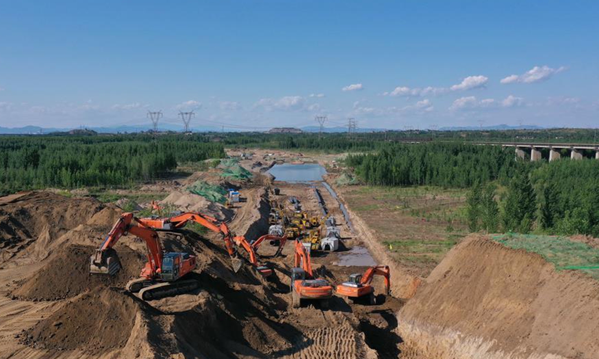 Aerial photo taken on June 4, 2020 shows the construction site of the Changling-Yongqing section of the China-Russia east-route natural gas pipeline in Youzha Township of Luanzhou City, north China's Hebei Province. (Xinhua/Yang Shiyao)