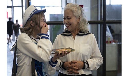 Director Mayye Zayed (left) accepts the Bronze Pyramid Award for the film Lift Like a Girl during the closing ceremony of the 42nd Cairo International Film Festival in Cairo, Egypt on December 10. Photo: AFP