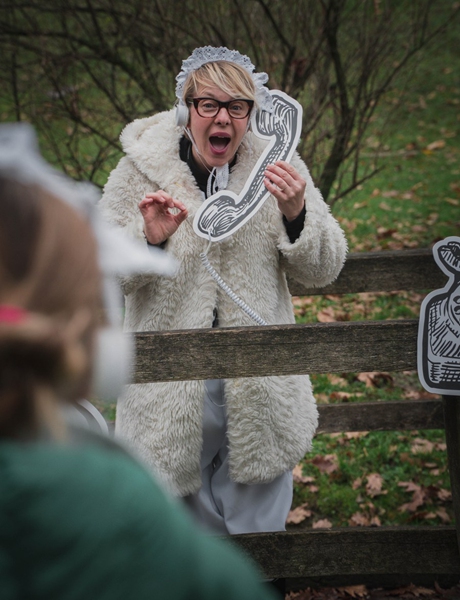Each Saturday and Sunday, no matter the weather, a park in the center of Zagreb is transformed into a theater stage: a forest where Little Red Riding Hood, her Grandma and a wolf play out their story in an innovative and creative way. The audience is divided into three groups and each group (due to the epidemiological measures no more than seven people) follows a different character through the park with all kinds of assignments. The text is prerecorded and the audience follows the story through headphones.