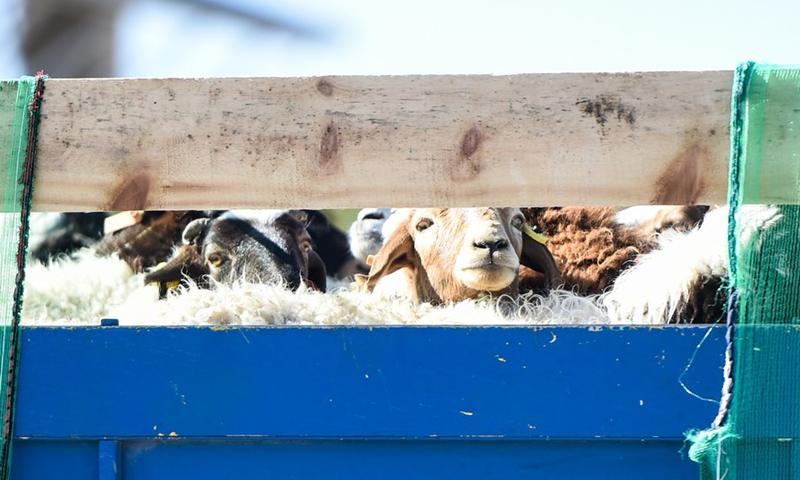 Photo taken on Oct 22, 2020 shows the sheep donated by Mongolia at Erenhot Port in Erenhot, north China's Inner Mongolia Autonomous Region.Photo:Xinhua