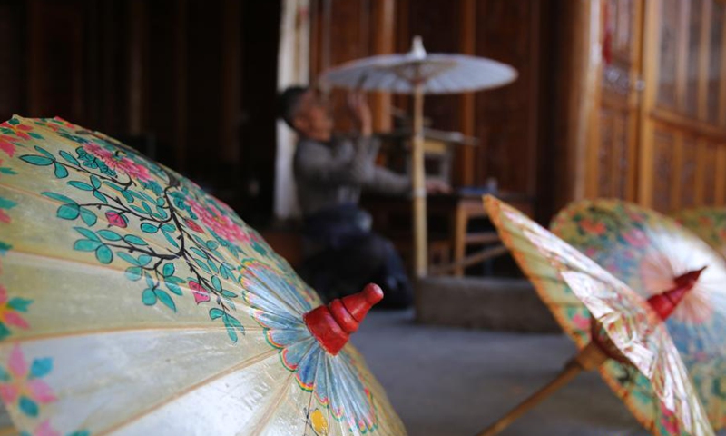 A craftswoman checks a piece of mulberry-bark paper in Moyu County of Hotan, northwest China's Xinjiang Uygur Autonomous Region, Nov. 1, 2020. (Xinhua/Ding Lei)