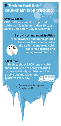 A Beijing-based frozen food importer, who refused to be named, told the Global Times that the release of a tracing platform is expected to restore normal sales of imported cold-chain food. "However, we hope every region can recognize each other's tracing code so that importers don't have to upload information repeatedly," he said.