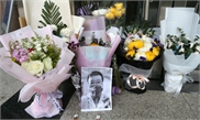 A photo of Li Wenliang is among the flowers people sent to the Central Hospital of Wuhan in February, 2020. Photo: Cui Meng/GT