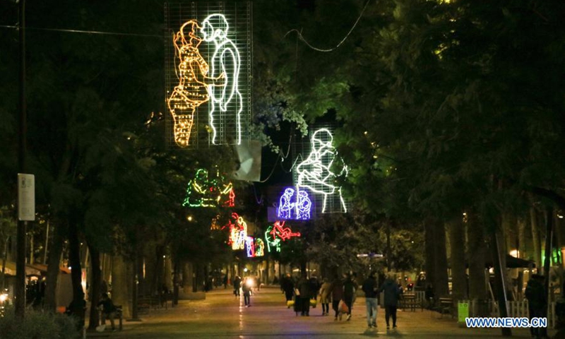 Photo taken on Jan. 3, 2021 shows the holiday lights in Barcelona, Spain. (Photo by Ismael Peracaula/Xinhua)