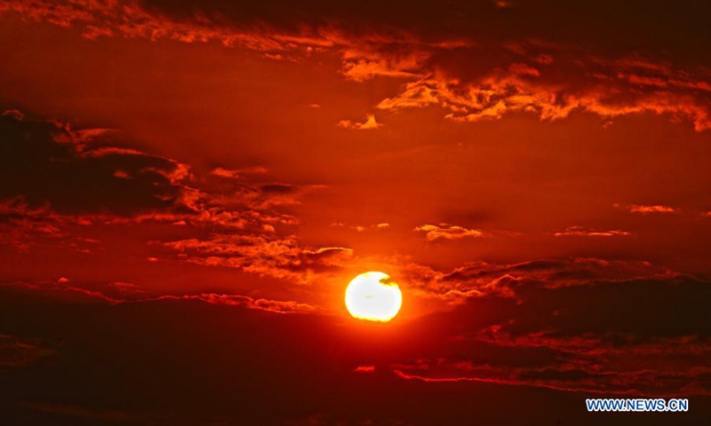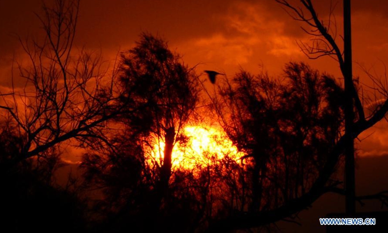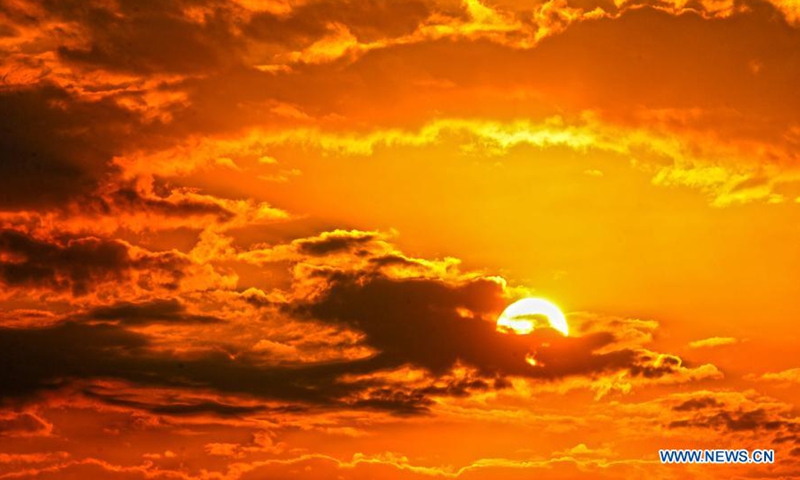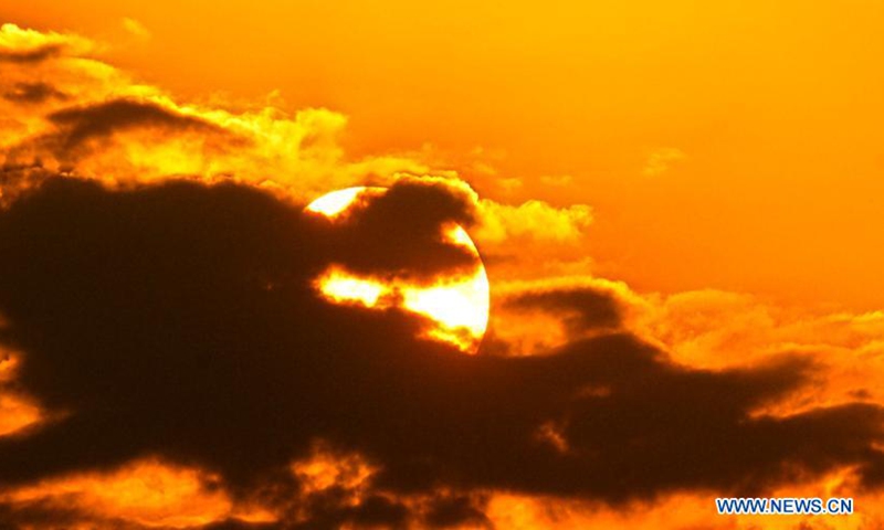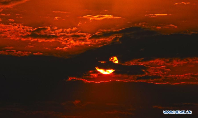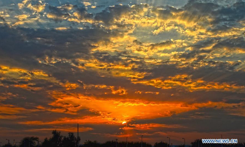 Photo taken on Jan.4, 2021 shows the sunset scenery in Farwaniya Governorate, Kuwait. (Photo by Asad/Xinhua)
