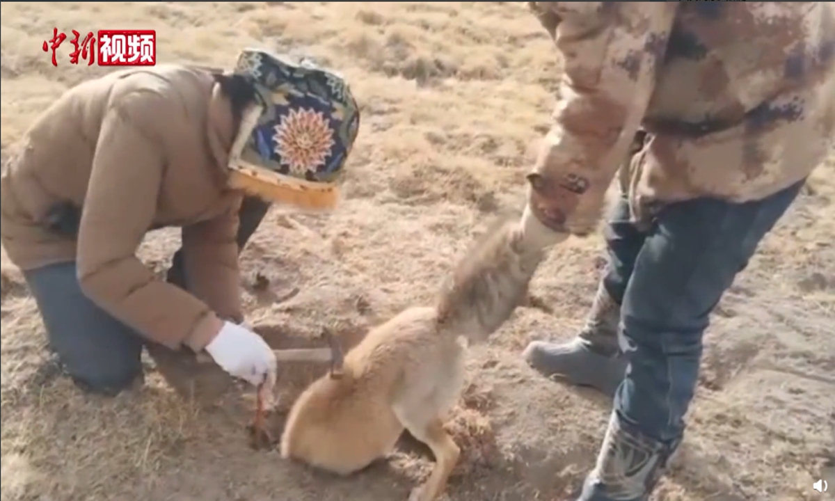 Herdsmen in Dulan county, Northwest China's Qinghai Province, recently rescued a red fox trapped in a mouse hole, leaving netizens both amused by the little creature's silliness and in admiration of the herdsmen's kindness, China News reported. Photo: screenshot of China News video on Sina Weibo.