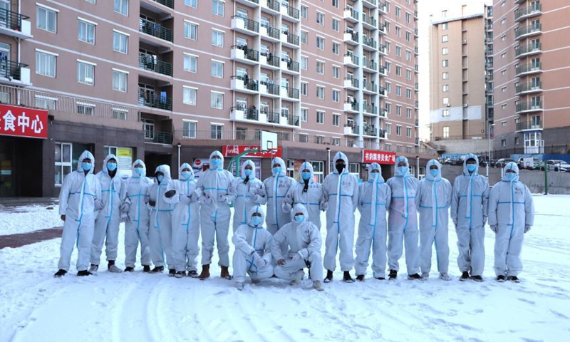 In response to the recent outbreak of COVID-19 cases in the city, Dalian Ocean University closed the campus on Dec. 21, 2020. A total of 17 young people, with an average age of 19, joined the volunteer team, delivering food, necessities and epidemic prevention materials for teachers and students quarantined in the dorm area.Photo:Xinhua