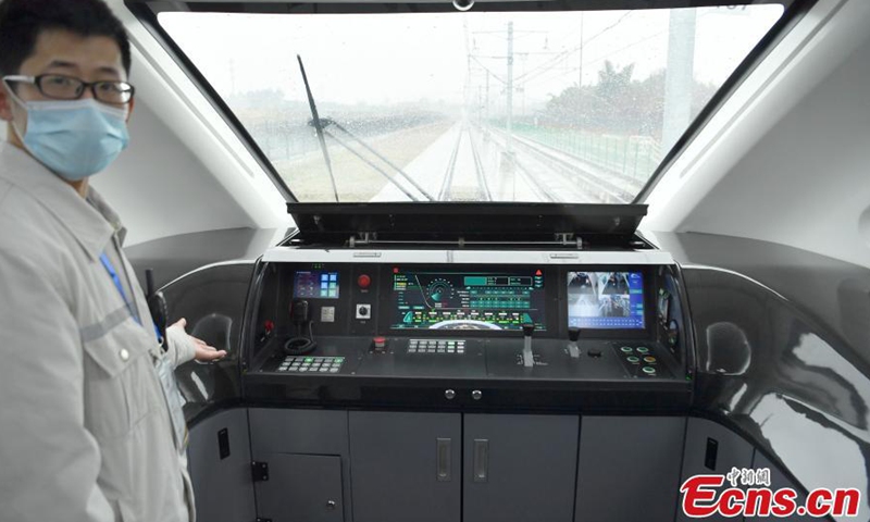 A staff member demonstrates some functions of the new train driving, Jan. 7, 2021.Photo:China News Service