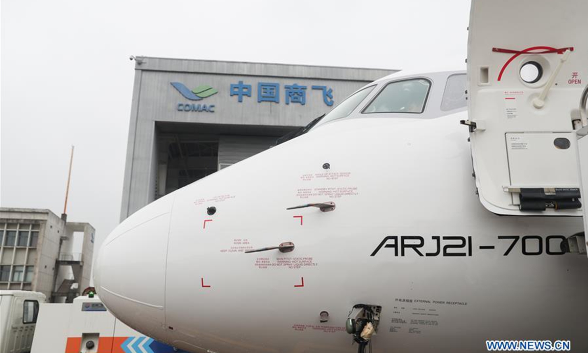 The ARJ21 was first put into commercial service by Chengdu Airlines in June 2016. The plane is China's first turbofan regional passenger jetliner. Designed with a capacity of 78 to 90 seats and a range of 3,700 km, it can fly in alpine and plateau regions and be used in different airport conditions.