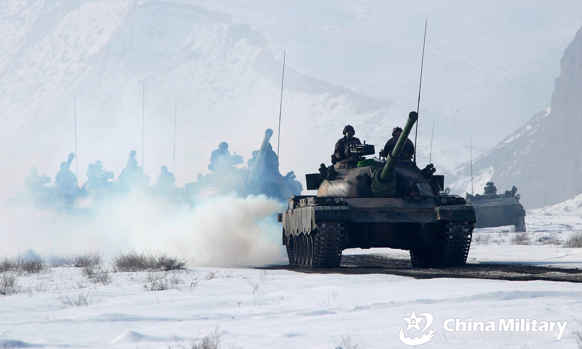 The armored detachment of a regiment under the PLA Xinjiang Military Command conducts field maneuver training in extremely cold weather on Jan. 4, 2021. (eng.chinamil.com.cn/Photo by Yuan Kai)