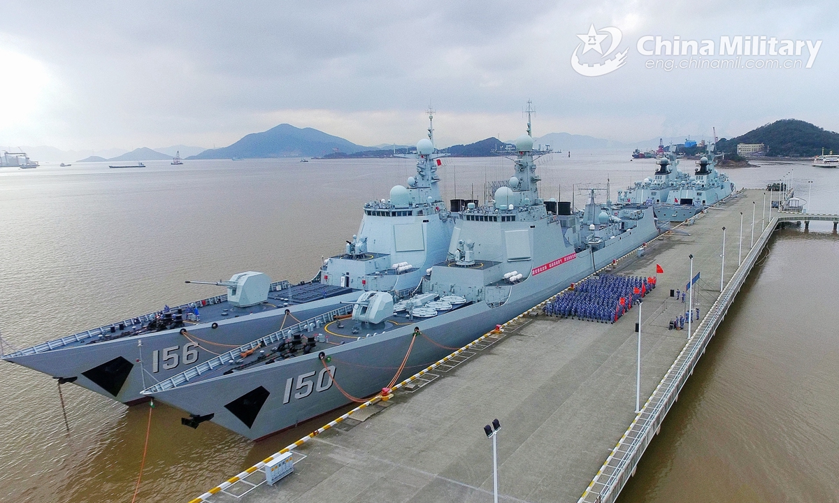 A destroyer flotilla of the Navy under the PLA Eastern Theater Command holds a mobilization rally for the new training session at a naval port in Zhoushan, east China's Zhejiang Province, Jan. 4, 2021. (eng.chinamil.com.cn/Photo by Shan Xinzhe)
