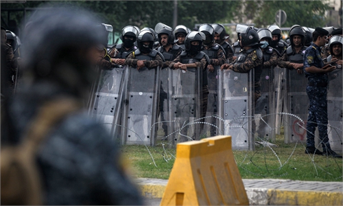 People wearing face masks are seen at a street in Baghdad, Iraq on Aug. 19, 2020. Night life has been resuming in Baghdad since Aug. 16, when the Iraqi Higher Committee for Health and National Safety cancelled the weekly three-day full curfew to replace them with partial curfew every week and reduced the partial curfew hours to be from 10:00 p.m. to 5:00 a.m. (Xinhua)
