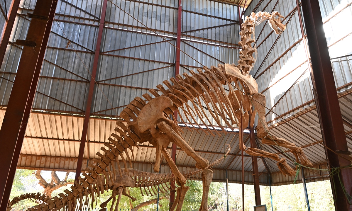 A dinosaur skeleton at the National Museum of Niger, which is also a zoo, in Niamey, Niger, on December 29, 2020 Photo: AFP