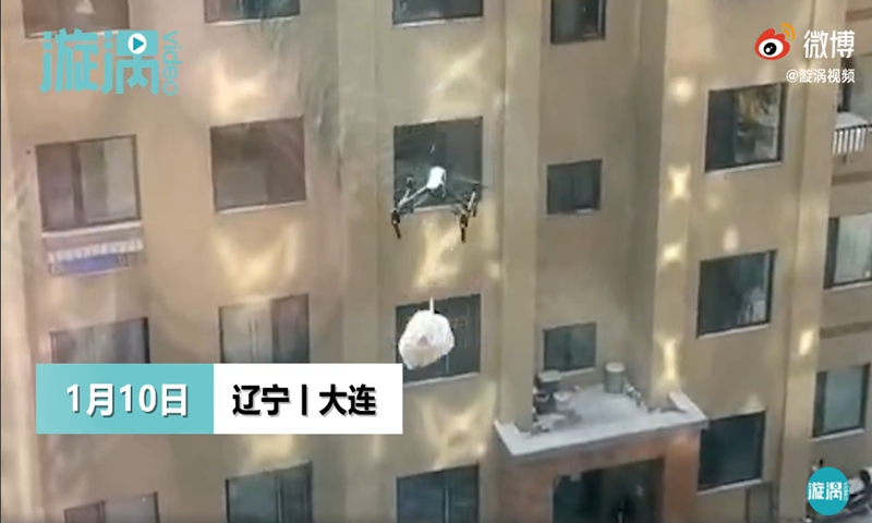 Some people might be worried about how to take out the household trash every day when the whole neighborhood goes into lockdown, but not residents in Dalian, Northeast China's Liaoning Province, who have been carrying out this chore with a little help from drones. Photo: screenshot of Xuanwo Video on Sina Weibo.