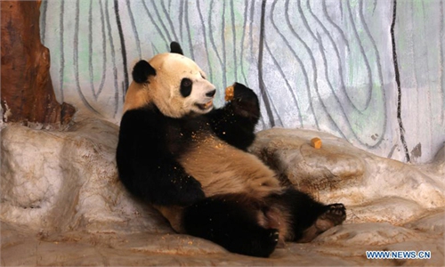 Giant panda Shun Shun has desserts at the Hainan Tropical Wildlife Park and Botanical Garden in Haikou, south ...