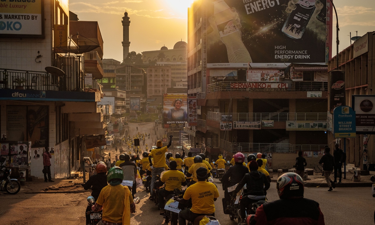 Images on state television showed jubilant Museveni supporters in his home district waving flags and cheering, while soldiers in the capital helped marshal motorcycle drivers for a parade - handing them yellow vests and Museveni posters.