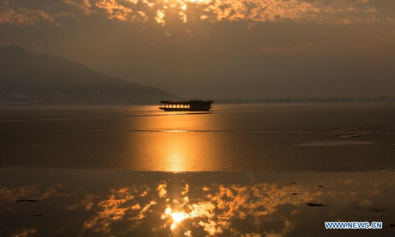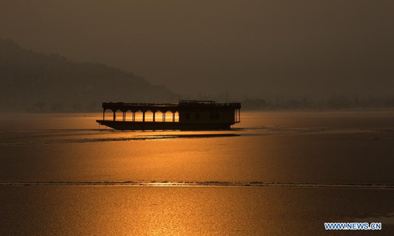 A boat is seen on Dal lake in Srinagar, the summer capital of Indian-controlled Kashmir, Jan. 17, 2021. (Xinhua/Javed Dar)