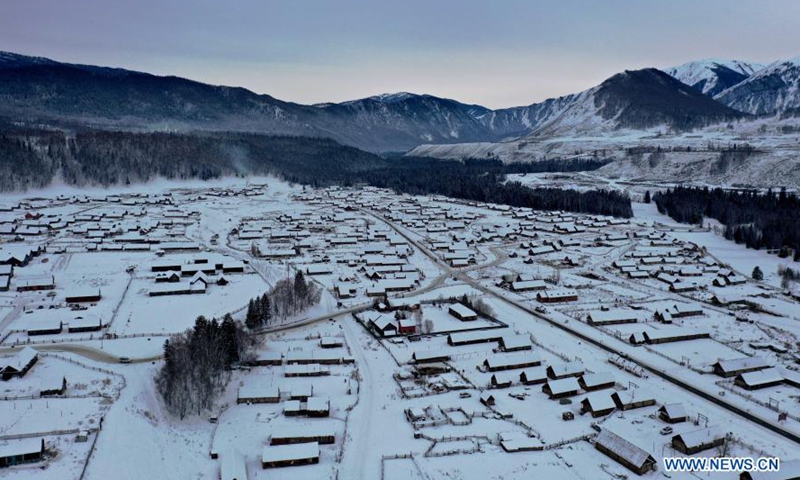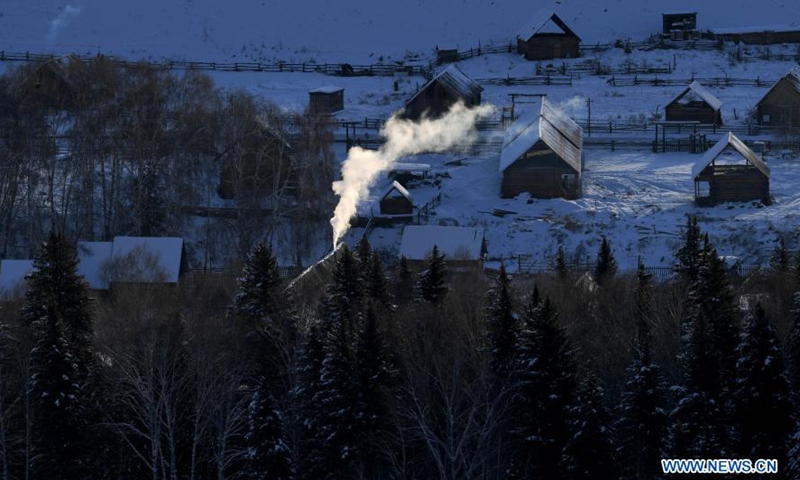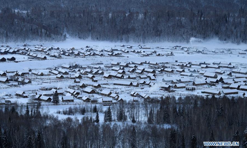 Photo taken on Jan. 10, 2021 shows the snow scenery in Hemu Village of Kanas, northwest China's Xinjiang Uygur Autonomous Region.Photo:Xinhua