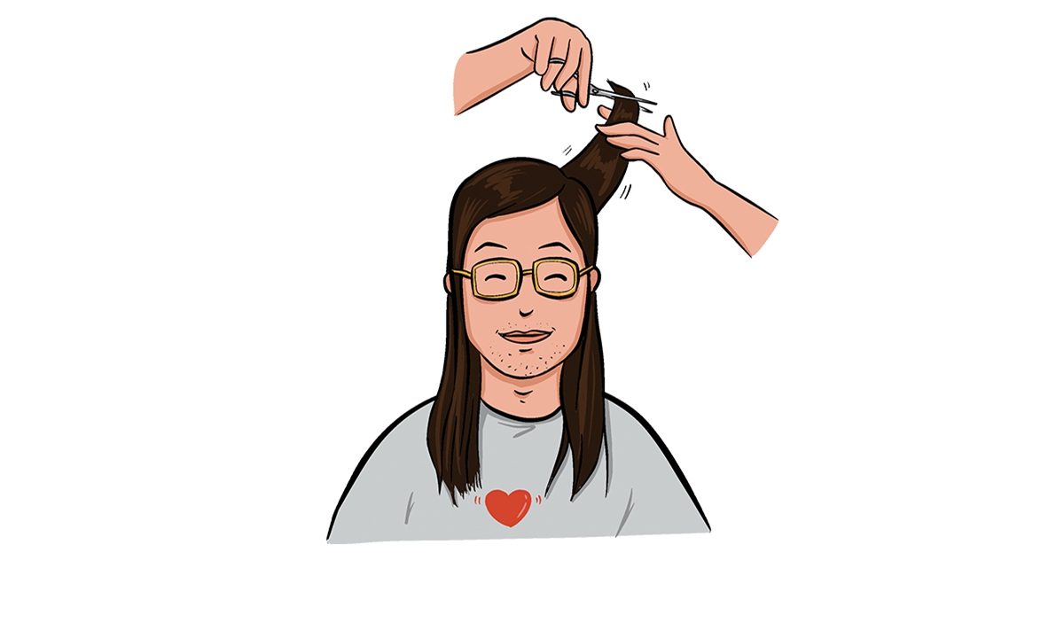A: He started to wear long hair in 2018. By the time he cut it, his hair was 40 centimeters long. He is the only male hair donor.