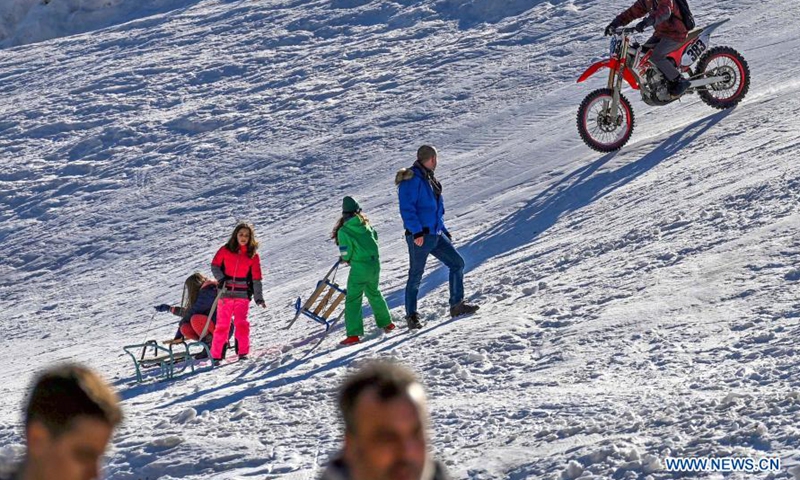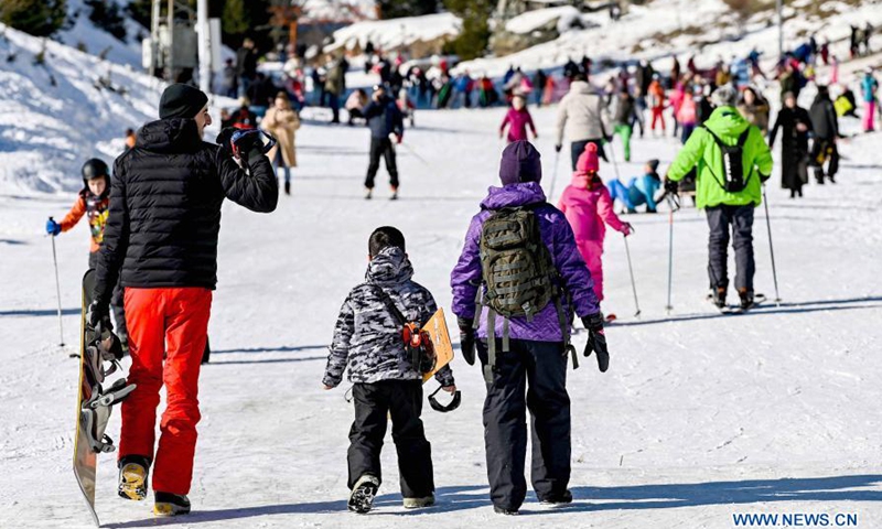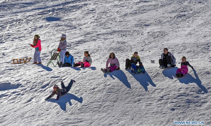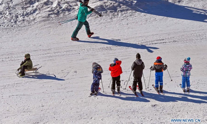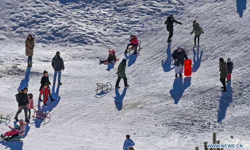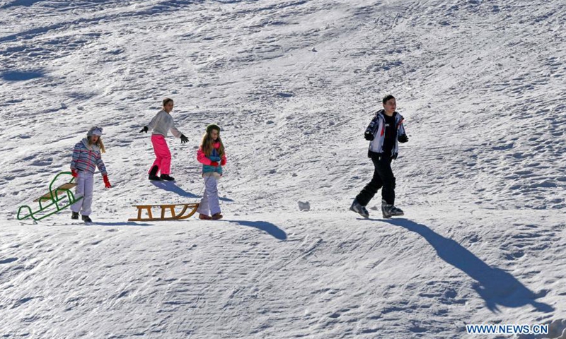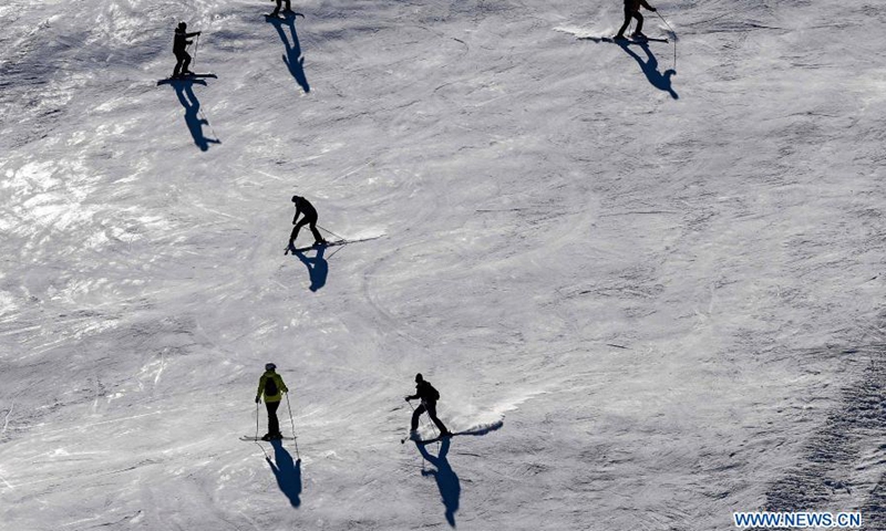People enjoy themselves at Popova Sapka Ski Center on Sar Planina Mountain, some 50km from Skopje, North Macedonia, Jan. 20, 2021.Photo:Xinhua
