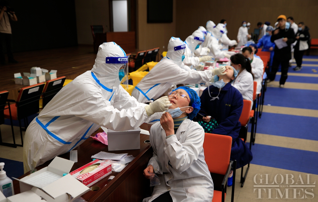 Photo: A Shanghai hospital conducts COVID-19 nucleic acid testing on its medical personnel on January 21, 2021. Photo: Yang Hui/GT