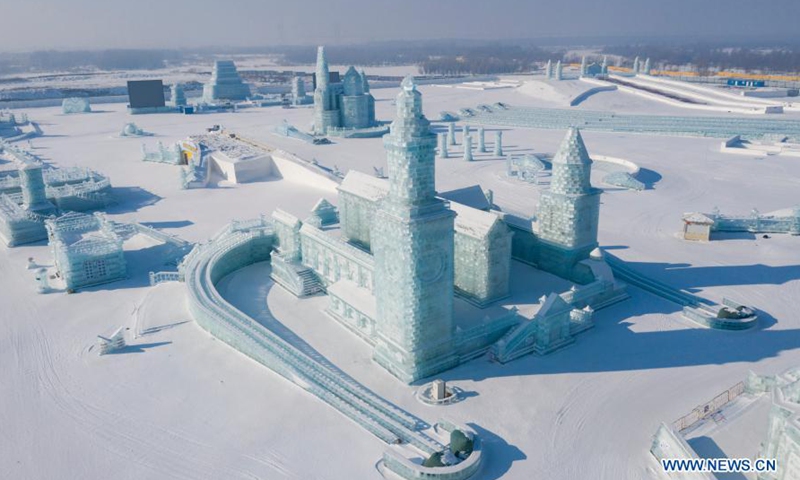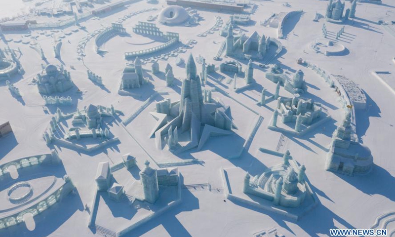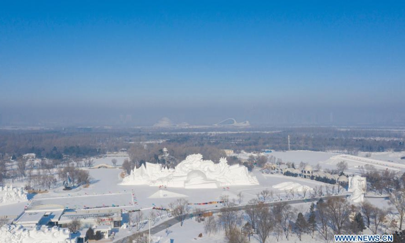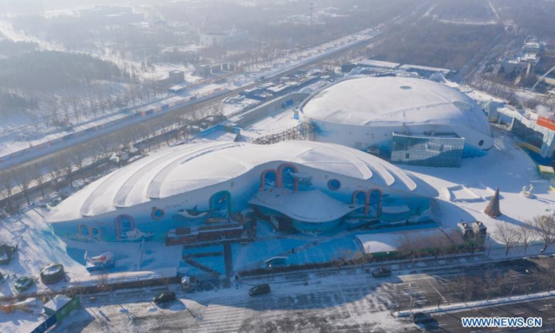 Aerial photo taken on Jan. 22, 2021 shows a view of the Harbin Polarland in Harbin, northeast China's Heilongjiang Province. Many scenic spots in Harbin have been temporarily shut down to curb the COVID-19 epidemic.Photo:Xinhua