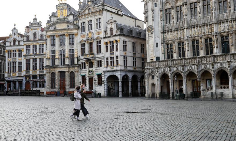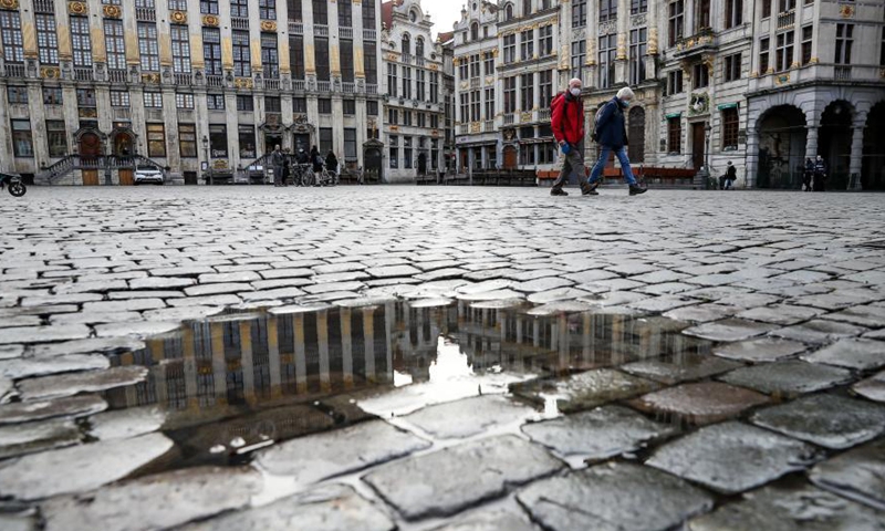 People walk on the Grand Place in Brussels, Belgium, Jan. 22, 2021. Belgium will start to ban non-essential travel from or to the country starting on Jan. 27, Prime Minister Alexander De Croo announced Friday. The ban will be valid until March 1. Photo:Xinhua