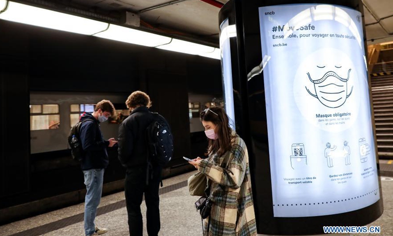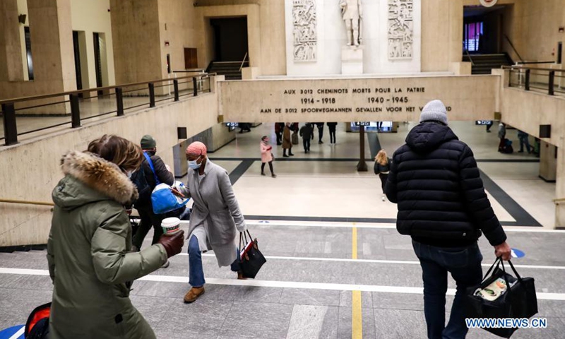 Passengers are seen at the Brussels Central Station in Brussels, Belgium, Jan. 22, 2021. Belgium will start to ban non-essential travel from or to the country starting on Jan. 27, Prime Minister Alexander De Croo announced Friday. The ban will be valid until March 1.Photo:Xinhua